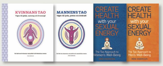 Mina insikter och erfarenheter har jag samlat i böckerna Kvinnans Tao & Mannens Tao – om hur du kan väcka upp livsenergin och finna vägen till glädje & njutning. Dessa finns även som ljud- och e-böcker – och på engelska. Onlinekurser och fysiska kurser finns baserade på böckerna & andra qigong-former som jag undervisar i, som t.ex.